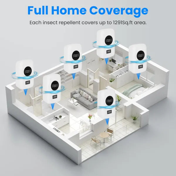 Full Home Coverage: Come with 6 packs, ideal for protecting your entire home from pests and mice. Each indoor bug repellent covers up to 1291Sq.ft area. One repeller for one room, no more worries about annoying pests!